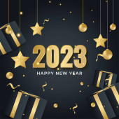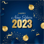 2023 Szczęśliwego Nowego Roku social media post lub szablon promocyjny z dekoracją świąteczną