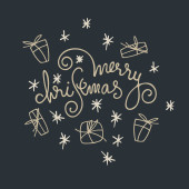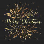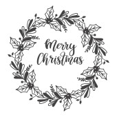 Świąteczny wieniec z ręcznie napisanymi pozdrowieniami w środku. Rama z gałązek jodły, ostrokrzew, kwiatostany jak złoto
