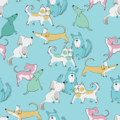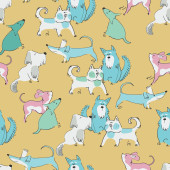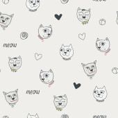 Zdjęcie "Płynny wzór z zabawnym kotem, miauczeniem i sercami. Idealny dla dzieci. Wykonane z wektorowych ilustracji w kreskówce, w stylu szkicowym" może być wykorzystywane do celów osobistych i komercyjnych zgodnie z warunkami zakupionej licencji Royalty-free. Obraz jest dostępny do pobrania w jakości wysokiej rozdzielczości do 5760x3840.