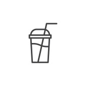 Plastikowy kubek i ikona słomki. liniowy znak stylu dla mobilnej koncepcji i projektowania stron internetowych. Puchar Milkshake 'a zarys ikony wektora. Symbol, ilustracja logo. Grafika wektorowa