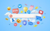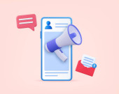 3d Marketing cyfrowy. Social Media Marketing, Promocja i koncepcja reklamy internetowej. Renderowanie 3D. Ilustracja wektora