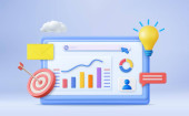 Wykres raportu finansowego 3D, optymalizacja SEO, analityka internetowa i koncepcja SEO marketingu. Strategia biznesowa. Wzór strony lądowania. Renderowanie 3D. Ilustracja wektora