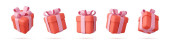 Zestaw 3d szklanej czerwonej kuli świątecznej Izolowany na białym tle. Noworoczna dekoracja zabawek. Element dekoracji wakacyjnej. Renderowanie 3D. Ilustracja wektora
