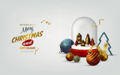 3D Boże Narodzenie i Nowy Rok studio podium z 3d bombki kulki, drzewa stożkowe, pudełko prezentów. Kreatywny świąteczny szablon. Zimowa kompozycja świąteczna. Baner i plakat internetowy. Renderowanie 3D. Ilustracja wektora