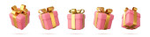 3D projekt Bożego Narodzenia, złoty metaliczny stożek spiralne drzewo z pudełkami prezentów. Święta i Nowy Rok. Renderowanie 3D. Ilustracja wektora