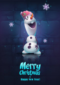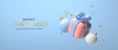 3d Wesołych Świąt i szczęśliwego Nowego Roku tle. 3D biały bałwan ładny charakter zimy, kartka świąteczna, baner, plakat internetowy. Renderowanie 3D. Ilustracja wektora
