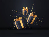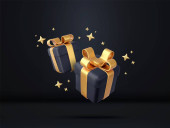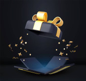 3D Niespodzianka otwarte pudełko z spadającym konfetti. Prezentujemy pudełko jako koncepcję nagrody. Boże Narodzenie i Nowy Rok niespodzianka. Prezent na urodziny. Renderowanie 3D. Ilustracja wektora