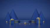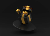 3d Christmas style Produkt podium sceny z latający biały prezent pudełko ze złotym łukiem. Wesołych Świąt i Nowego Roku świąteczny projekt baner, kartka z życzeniami. Renderowanie 3D. Ilustracja wektora