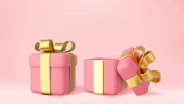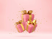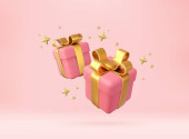 3d Christmas style Produkt podium sceny z latający biały prezent pudełko ze złotym łukiem. Wesołych Świąt i Nowego Roku świąteczny projekt baner, kartka z życzeniami. Renderowanie 3D. Ilustracja wektora