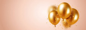 Zdjęcie "Balony 3D ze wstążką. Uroczysty design ze złotymi balonami z błyszczącym konfetti. Stylowy plakat, okładka, baner, strona, aplikacja mobilna. Renderowanie 3D. Ilustracja wektora" może być wykorzystywane do celów osobistych i komercyjnych zgodnie z warunkami zakupionej licencji Royalty-free. Obraz jest dostępny do pobrania w jakości wysokiej rozdzielczości do 5760x3840.