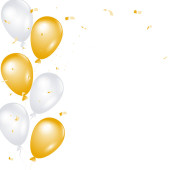 Zdjęcie "Balony 3D ze wstążką błyszczącą konfetti. Element designu balony w kolorze złotym i błyszczące konfetti na kartkę okolicznościową lub zaproszenie. Renderowanie 3D. Ilustracja wektora" może być wykorzystywane do celów osobistych i komercyjnych zgodnie z warunkami zakupionej licencji Royalty-free. Obraz jest dostępny do pobrania w jakości wysokiej rozdzielczości do 5760x3840.