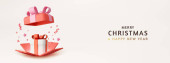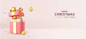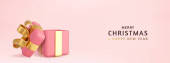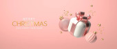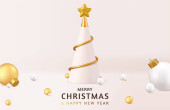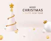 3d Boże Narodzenie i Nowy Rok świąteczny szablon. Okrągły podium studio szkło śnieg pusty piłka. Kreatywny projekt wakacyjny. Zimowa kompozycja świąteczna. Baner i plakat internetowy. Renderowanie 3D. Ilustracja wektora