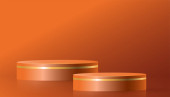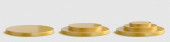3D ustawić złoty okrągły podium z cieniem. Okrągły piedestał zwycięzcy. Pusta platforma 3D. Renderowanie 3D. Ilustracja wektora