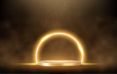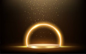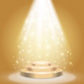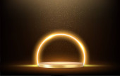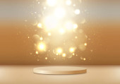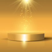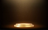 3d Złote podium pod spadającym złotym brokatem izolowane na ciemnym tle. Renderowanie 3D. Ilustracja wektora