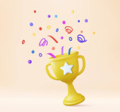 Zdjęcie "Trofeum 3D Champion, ikona złotej filiżanki. Nagroda zwycięzcy, nagroda sportowa, koncepcja sukcesu. 3D mistrzowie nagradza koncepcję ceremonii z rankingu stylu. Renderowanie 3D. Ilustracja wektora" może być wykorzystywane do celów osobistych i komercyjnych zgodnie z warunkami zakupionej licencji Royalty-free. Obraz jest dostępny do pobrania w jakości wysokiej rozdzielczości do 5760x3840.