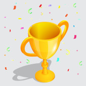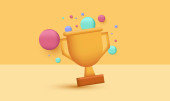Zdjęcie "Ikona zdobywcy nagrody 3D ze złotym kubkiem, gwiazdy zwycięzców z obiektami pływającymi wokół. nagroda z konfetti. Renderowanie 3D. Ilustracja wektora" może być wykorzystywane do celów osobistych i komercyjnych zgodnie z warunkami zakupionej licencji Royalty-free. Obraz jest dostępny do pobrania w jakości wysokiej rozdzielczości do 5760x3840.