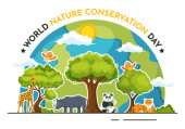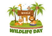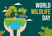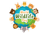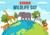 Światowy Dzień Dzikiej Przyrody w dniu 3 marca w celu podniesienia świadomości zwierząt, roślin i ochrony ich siedliska w lesie w płaskiej kreskówki ręcznie rysowane szablon ilustracja