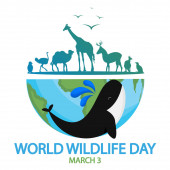 Światowy Dzień Dzikiej Przyrody w dniu 3 marca w celu podniesienia świadomości zwierząt, roślin i ochrony ich siedliska w lesie w płaskiej kreskówki ręcznie rysowane szablon ilustracja