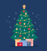 Świąteczna koncepcja. Cute choinki z płatków śniegu o różnych wzorach i rozmiarach. Świąteczna kartka. Ilustracja wektora