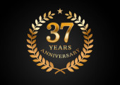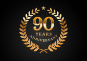 Grafika wektorowa tła obchodów rocznicy. 82-letnie złote logo rocznicy z wieńcem laurowym na czarnym tle. Dobry design imprezy weselnej, urodziny, zaproszenie, broszura, itp