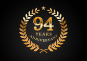 Grafika wektorowa tła obchodów rocznicy. 96 lat złotego jubileuszu z wieńcem laurowym na czarnym tle. Dobry design imprezy weselnej, urodziny, zaproszenie, broszura, itp