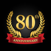Grafika wektorowa tła obchodów rocznicy. 80 lat złotego jubileuszu z wieńcem laurowym na czarnym tle. Dobry design imprezy weselnej, urodziny, zaproszenie, broszura, itp