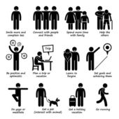 Zdrowego stylu życia codzienne porady Stick Figure piktogram ikony