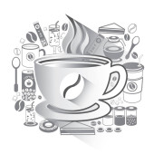 Kreskówka uśmiechający się transparent filiżanka kawy