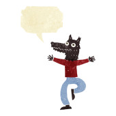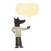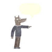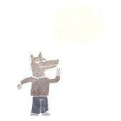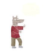 kreskówki wilk człowiek wskazując z bańki myślowej