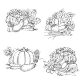 Owocowe i warzywne kompozycje w stylu retro rysunek styl