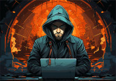 Symbol hakera z cyfrowym kodem binarnym, łańcuch ognia. Aktor zagrożeń, APT, zaawansowane trwałe zagrożenie, ransomware, złośliwe oprogramowanie, ddos, cybernetyczny incydent podatność cybernetyczna złośliwa koncepcja ataku