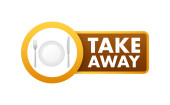 Take away sign, label. Take out food icon. Vector stock illustration.