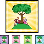 Chłopiec i dziewczynka czytanie pod drzewem
