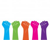 kolor pięści z kopii przestrzeni nad na białym tle