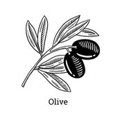 Szkic wektor gałąź drzewa oliwnego. Grawerowanie ręka styl.