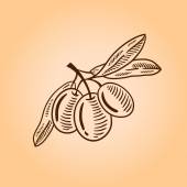 Gałąź owoce rokitnika. Sanddorn. Grawerowanie ilustracja. Na białym tle.