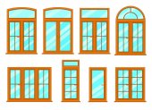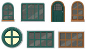 Zamknięte okna łukowe izolowane na przezroczystym tle. Drewniana rama i szkło. Ilustracja wektora