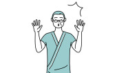 A casually dressed young man raising his hand in surprise, Vector Illustration