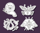 Zdjęcie "Old school tattoo. Retro sailor black outlines tattooing style, american traditional designs. Hand drawn flash tattoos vector illustration set. Isolated stickers as diamond, bird, nautical elements" może być wykorzystywane do celów osobistych i komercyjnych zgodnie z warunkami zakupionej licencji Royalty-free. Obraz jest dostępny do pobrania w jakości wysokiej rozdzielczości do 5760x3840.