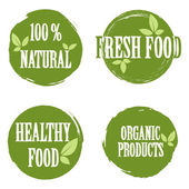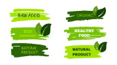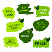 Żywność ekologiczna i naturalne logo produktu, znak, ikona, naklejki, etykiety i odznaki kolekcja na rynek spożywczy, promocja produktów ekologicznych i naturalnych.