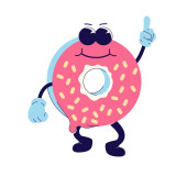 Zdjęcie "Pączek. Zabawna postać z kreskówki. Kontekst izolowany wektora " może być wykorzystywane do celów osobistych i komercyjnych zgodnie z warunkami zakupionej licencji Royalty-free. Obraz jest dostępny do pobrania w jakości wysokiej rozdzielczości do 5760x3840.