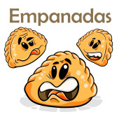 Empanadas. Zabawna postać z kreskówki. Kontekst izolowany wektora