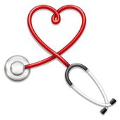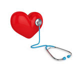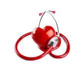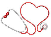Czerwone serce ze stetoskopem na białym. Odbiór. Poziomy plakat medyczny, kartki okolicznościowe, nagłówki, strona internetowa i aplikacja