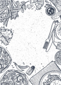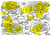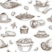 Zdjęcie "Pizzeria smaczne dania i przepisy kulinarne, pizza z warzywami i mięsem. Salami i grzyby, cebula i pomidory, oliwki i zioła. Płynny wzór wydruku lub tapety tła. Wektor w płaskim stylu" może być wykorzystywane do celów osobistych i komercyjnych zgodnie z warunkami zakupionej licencji Royalty-free. Obraz jest dostępny do pobrania w jakości wysokiej rozdzielczości do 5760x3840.