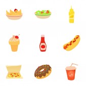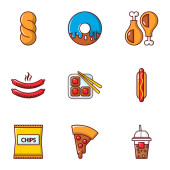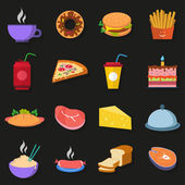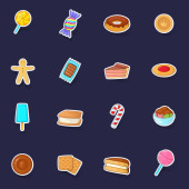 Fast food ikony zestaw naklejki wektor kolekcji z cieniem na fioletowym tle