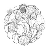 Zdjęcie "Czarno-białe owoce i warzywa. Zabawna zdrowa głowa strony kolorowanki z fig zamiast oczu, papryka chili zamiast ust, kukurydza zamiast nosa, kokos zamiast uszu. Ilustracja wektora" może być wykorzystywane do celów osobistych i komercyjnych zgodnie z warunkami zakupionej licencji Royalty-free. Obraz jest dostępny do pobrania w jakości wysokiej rozdzielczości do 5760x3840.