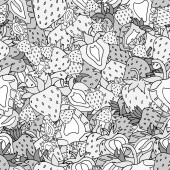 Doodle owoce bezszwowy wzór do kolorowanki. Kolorowanka żywności. Czarno-białe tło z truskawkami, smoczymi owocami, brzoskwiniami itp. Ilustracja wektora