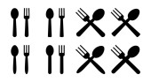Ilustracja wektora łyżki i widelca. łyżka, widelec i wektor ikony noża. znak i symbol restauracji