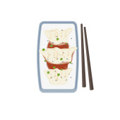 Ilustracja Logo Gyoza Jiaozi Dumplings Ready to Eat With Chopsticks Dipped in Soy Sauce