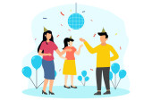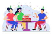 Szczęśliwi ludzie bawiący się na biurowej imprezie. Podekscytowane dziewczyny biurowe i faceci świętujący sukces razem. Impreza korporacyjna, działalność team building, koncepcja imprezy firmowej.